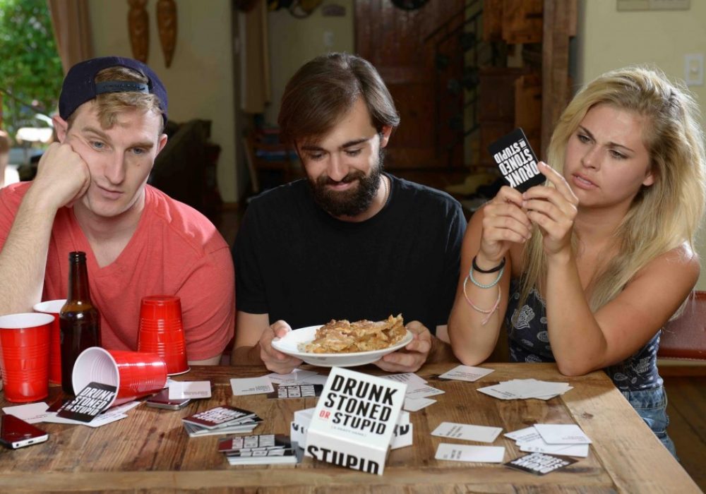 Drunk, Stoned, or Stupid is a party game that's somewhat similar to Cards Against Humanity or Apples To Apples. How it works is you go around the circle with a new person being a judge each round. The Judge grabs a random card from the stack and reads it aloud to the group. Examples of cards include: "Call Dibs On People At Parties", "Use Daddy.
